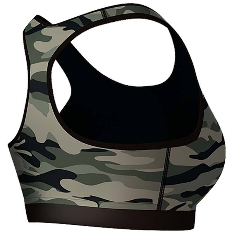 Das Camouflage Muster besteht aus drei schönen Grüntönen und aus Schwarz. Die Farben harmonieren sehr gut miteinander. Der breite Gummibund fühlt sich auch sehr weich an und hebt sich durch die schwarze Farbe nochmal vom Sports Bra ab. Die äußeren Umrandungen wurden auch extra in schwarz gehalten um dem Sport BH einen gewissen edlen Look zu verleihen.