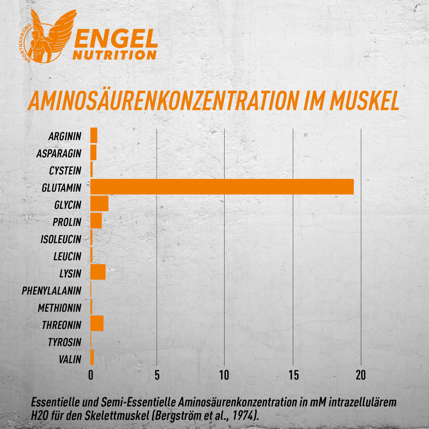Von allen proteinogenen (muskelbildenden) Aminosäuren gehört Glutamin zu der am häufigsten vorkommenden Aminosäure in unserem Körper und ist mit etwa 60% besonders hoch konzentriert in unserer Muskulatur zu finden. Keine andere Aminosäure erreicht diese Top-Werte, was unterstreicht, welche große Bedeutung L-Glutamin zukommt.